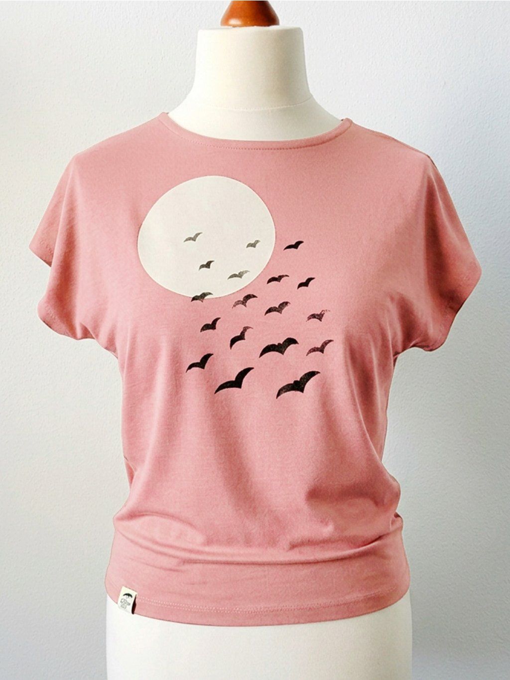 Jednoduchý top z jemného bambusového úpletu. S ručním autorským potiskem ptačího hejna.