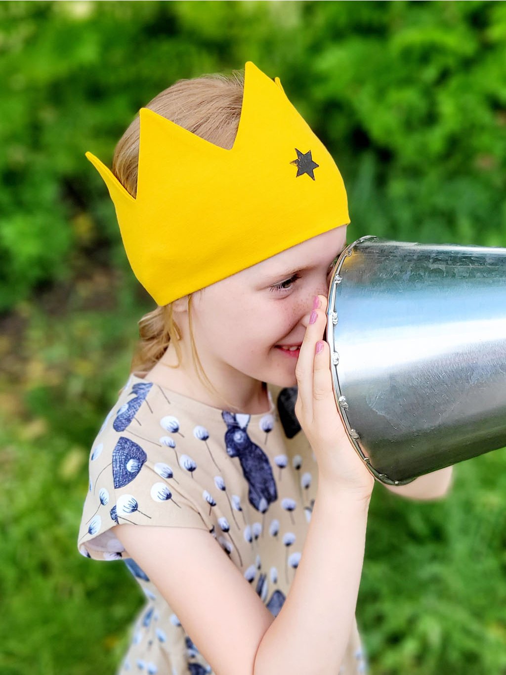 Pružná čelenka ve tvaru korunky pro malé princezny i prince. S ručním potiskem hvězdičky.