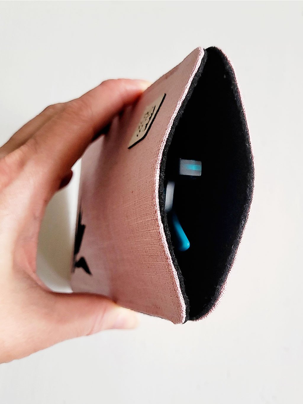 Pouzdro ideálně neperte, ale v případě většího zašpinění můžete vyprat na jemný program na 30oC, nízké otáčky (max 800), nesušit v sušičce, nebělit, nečistit chemicky, nežehlit.