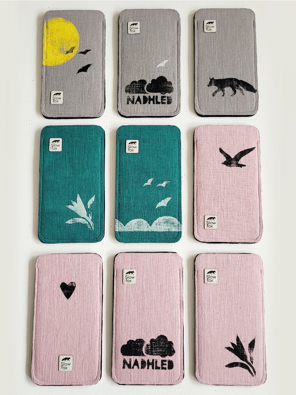 Lněné pouzdro na telefon či brýle. S ručním autorským potiskem NADHLED.
