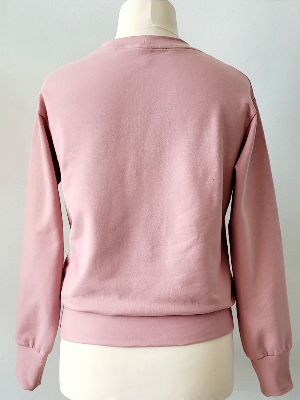 Mikina je klasického střihu, vychází z MILÉ mikiny, jen jsem přidala pružné vyšší lemy, které zdůrazní pas i ruce a zároveň udržují teplo. Není to oversize střih (dva svetry pod ní nenarvete :-).