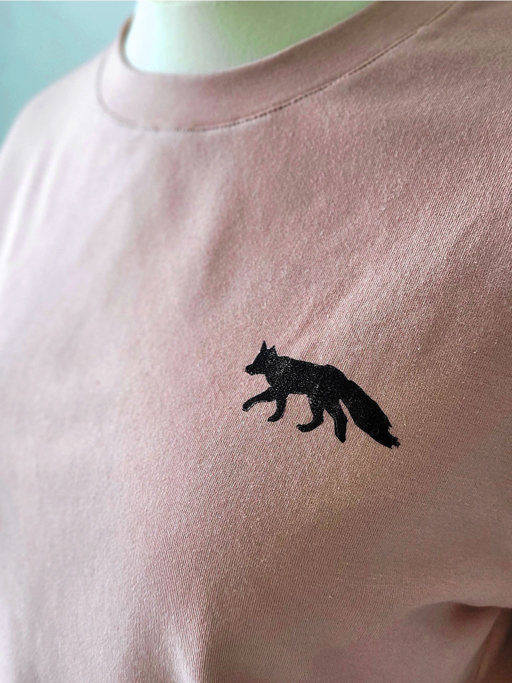 Autorský ruční potisk MiniFOX je decentní a jemně elegantní. Linorytová razítka si vyrábím sama a tisknu kvalitními vodouředitelnými sítotiskovými barvami, které jsou na látce měkké a jasné. Potisk má charakteristickou strukturu a vzhled razítka, není to plnobarevná plocha jako u sítotisku.