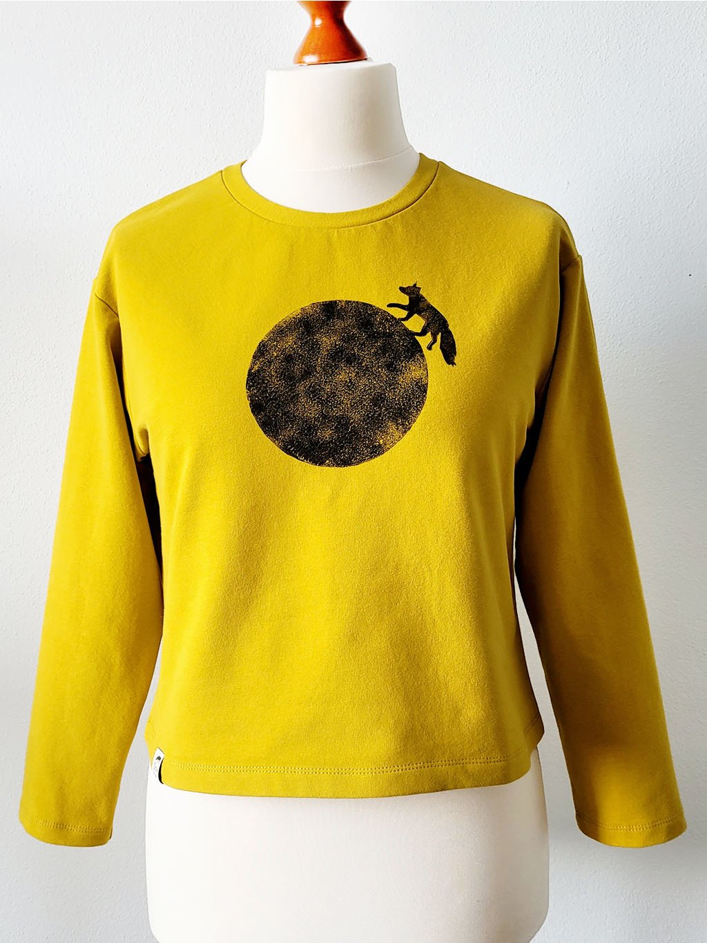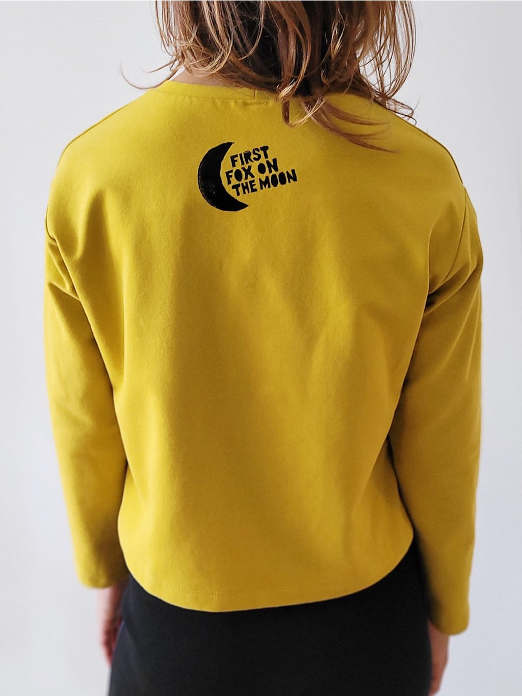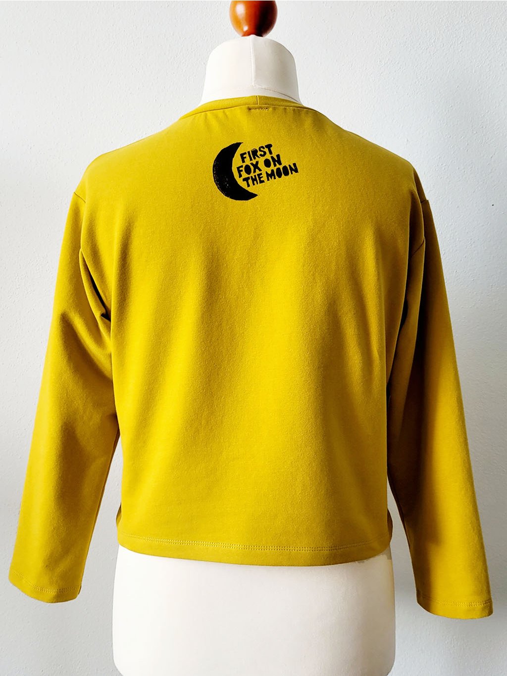 Crop mikina z úžasně příjemné a měkké počesané bio teplákoviny. S ručním autorským potiskem Lišky na Měsíci.
