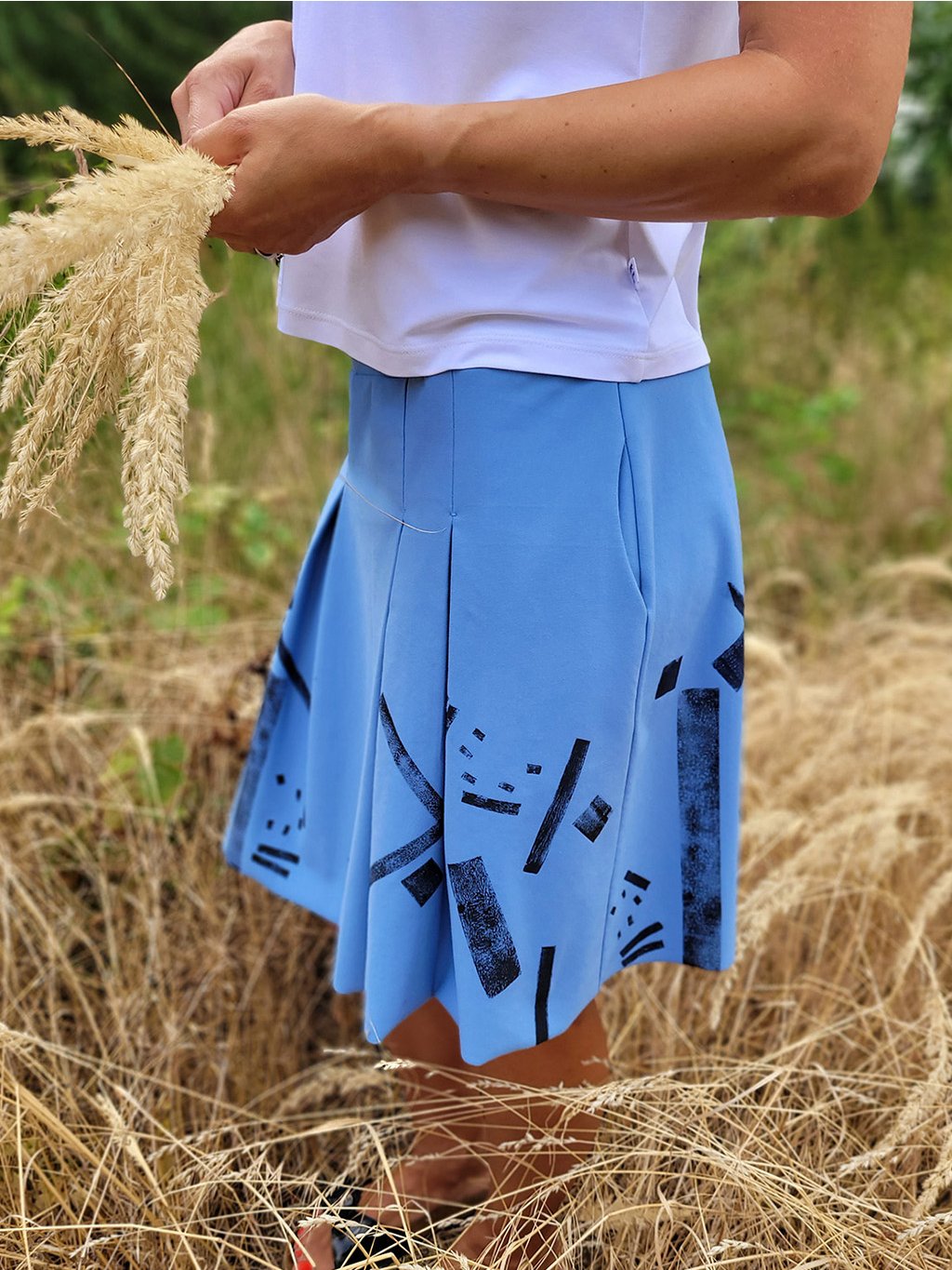 Sukně BUBINA - modrá, potisk ČÁRY, L